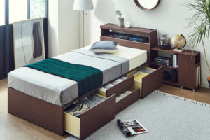 収納部分の深さが選べる跳ね上げ式ベッドもあります。