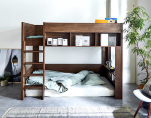 特に平均的な体型の大人であれば、快適に眠るには一人あたりセミダブルサイズは欲しいところ。このベッドなら上は子供、下は大人といった使い方もしやすいです。